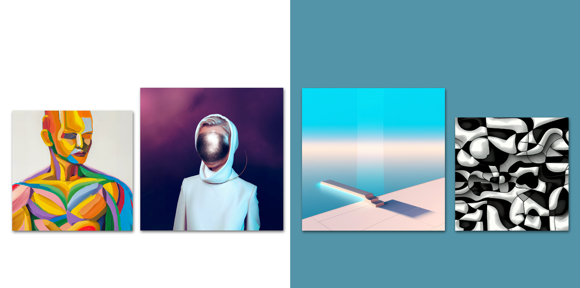 This work brings together images (four) generated by artificial intelligence before ethical alignment became an explicit design goal.